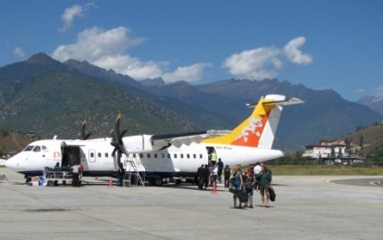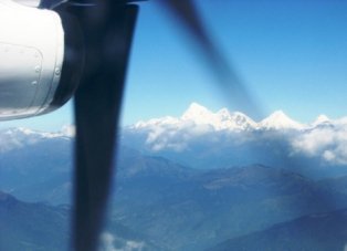 ..mit der “Drachenfluglinie” Druk-Air entlang der Himalaya-Range ^ und Mount Everest -->