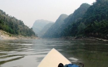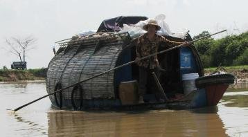 Langboote auf dem Mekong