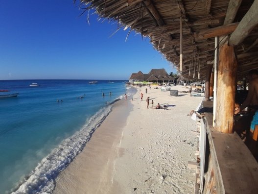 16.-19.Tag – So. 12. - Mi. 15.12.21 Sansibar - Nungwi Beach: Die nächsten vier Tage verbringen wir am Strand der Insel in einem hübschen Bungalow-Resort mit Pool im tropischen Garten und gutem Restaurant über dem azurfarben leuchtenden Meer. An diesem Strand kann man bei Flut und Ebbe baden (ist hier oft nicht so), es gibt nette kleine Läden und weitere Lokale, alles ein buntes aber ruhiges Treiben mit eingebautem Sonnenuntergang im Meer. Beim abendlichen Sundowner beobachten wir das Heimkommen der Fischerboote (Segel-Dhaus), bevor wir direkt am Strand superfrisches Seafood oder auch (sogar gute) Spaghetti o.ä. bestellen.